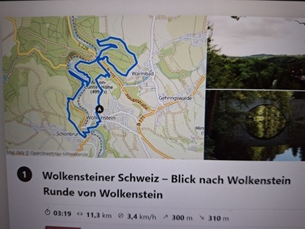 Die Tour beginnt in Warmbad auf dem Parkplatz an der Silbertherme. Empfehlenswert ist es einen Rundgang durch den Ort und Kurpark mit der Wanderung zu verbinden. Von der Silbertherme aus wandern wir zur Hüttenmühle. Nach dem überqueren der B101 folgen wir der Ausschilderung Anton Günther Platz. Ein Abstecher zum historischen Floßplatz kann hier genommen werden. Vom Anton Günther Platz hat man eine wundervolle Aussicht. Die Ausschilderung zur Wolkensteiner Schweiz führt zum nächsten Aussichtspunkt. Der Abstieg zur Zschopau führt über einen Klettersteig und ist nichts für ungeübte. Nun folgt man dem Wanderweg nach Wolkenstein. Im Ort geht es steil bergauf zur Burg. Der Ortskern und die Burg sind sehr sehenswert. Zurück nach Warmbad führt die Ausschilderung über Badstraße zur Hüttenmühle und dann nach Warmbad. Zum Abschluss kann man in der Silbertherme entspannen.